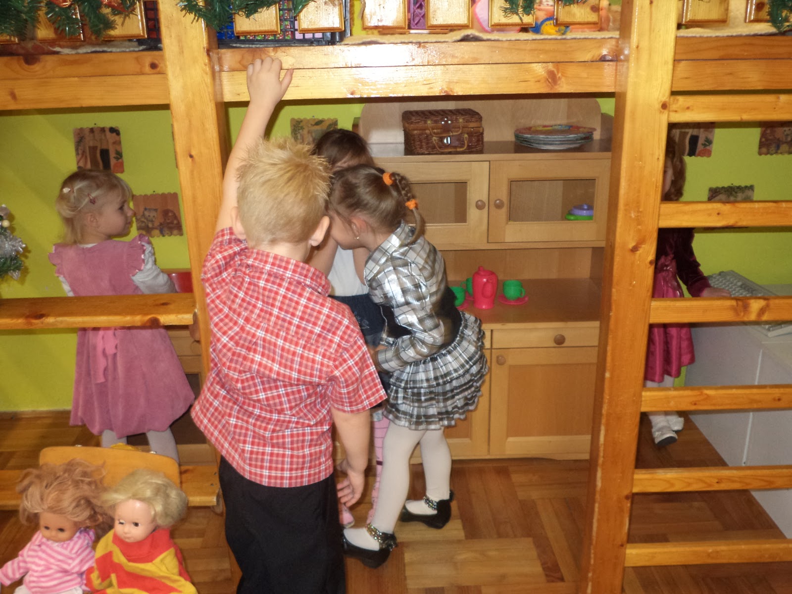 Az előkészületekből már csak a nagytakarítás, a babák ünneplő ruhába öltöztetése és a karácsonyfa feldíszítése van hátra. Először a takarítást hajtottuk végre. Nagyon dolgoztak a szorgos kezecskék. Port töröltünk, játékot válogattunk, egyszóval gyönyörű rendet varázsoltunk.